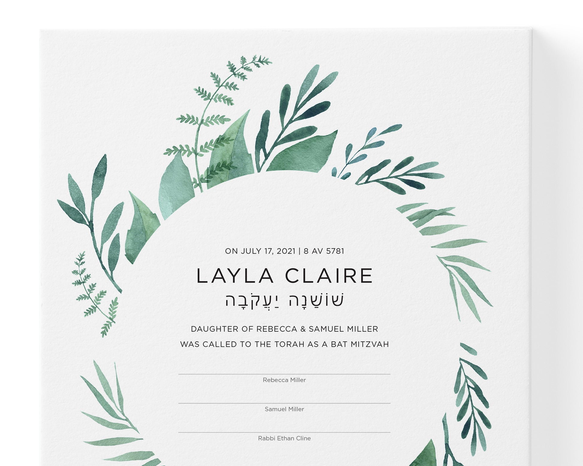 Celebrate a Bar or Bat Mitzvah with a customized certificate. Personalize names, dates, colors, quotes or anything else you’d like to change. We can usually accommodate.