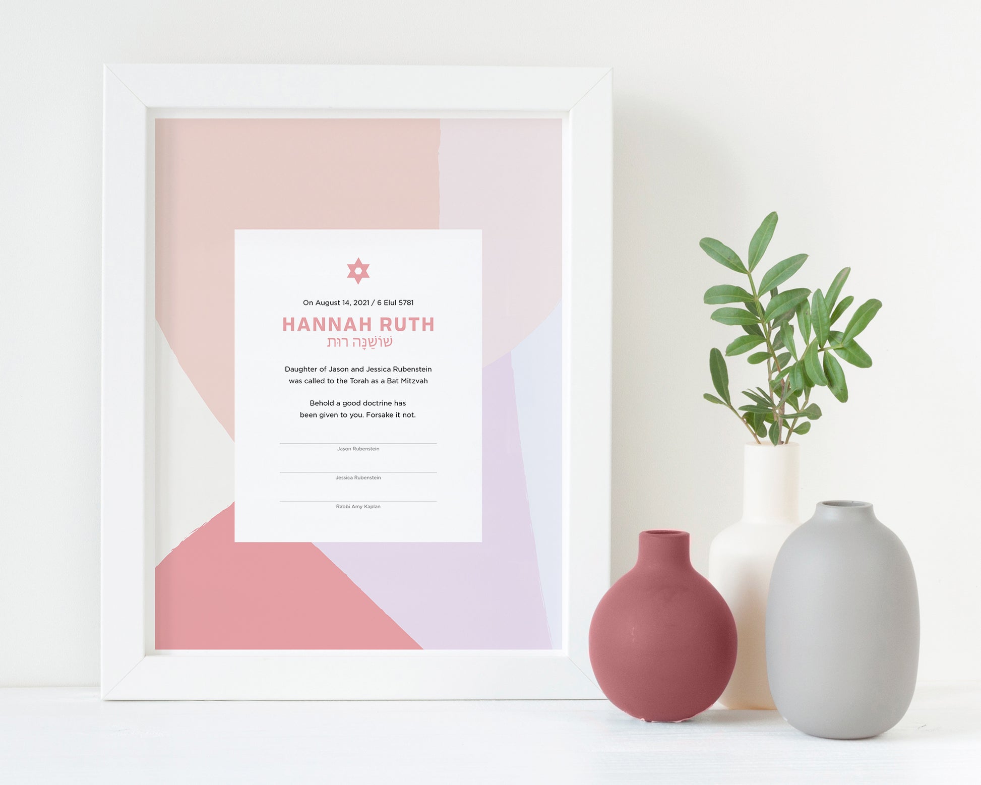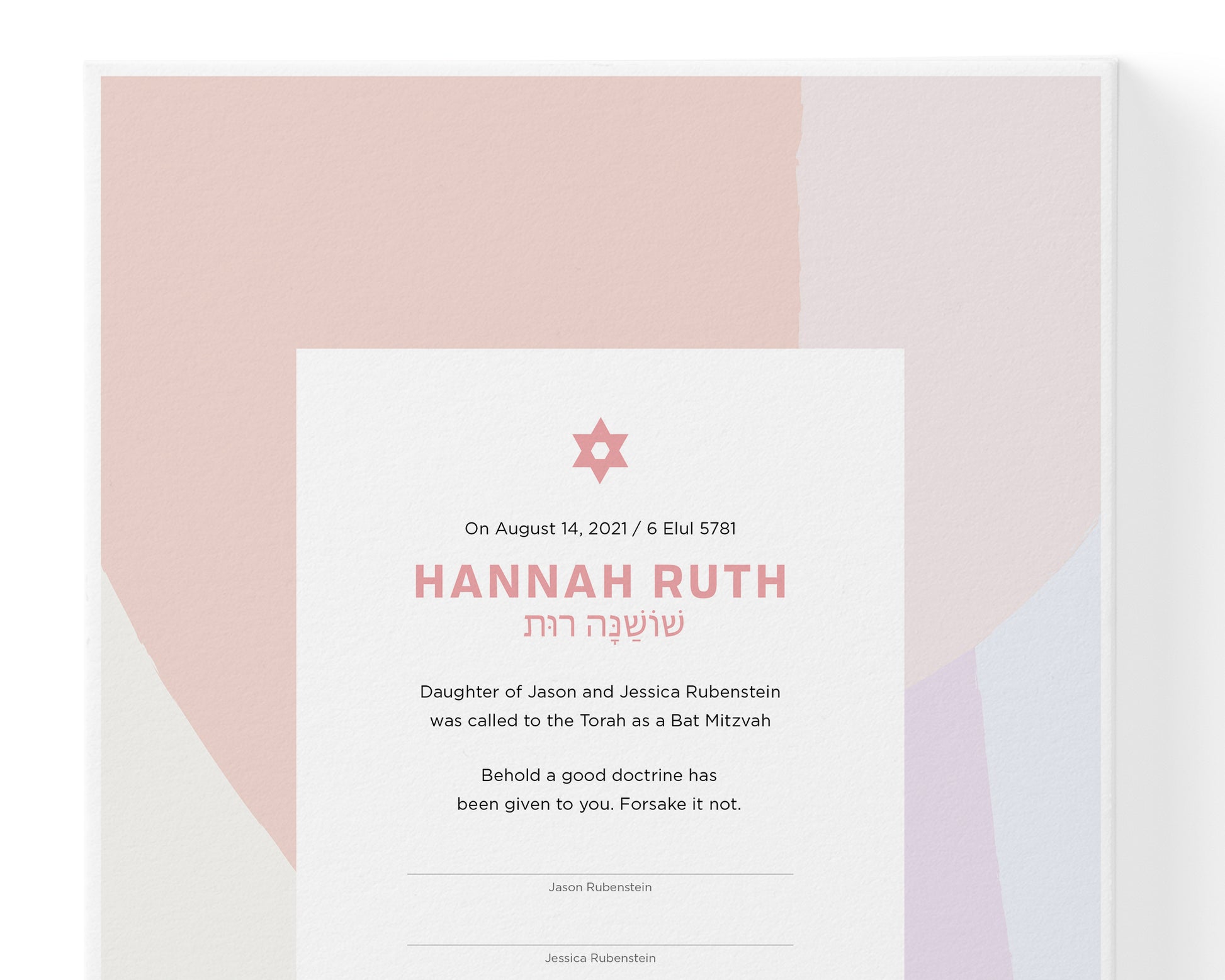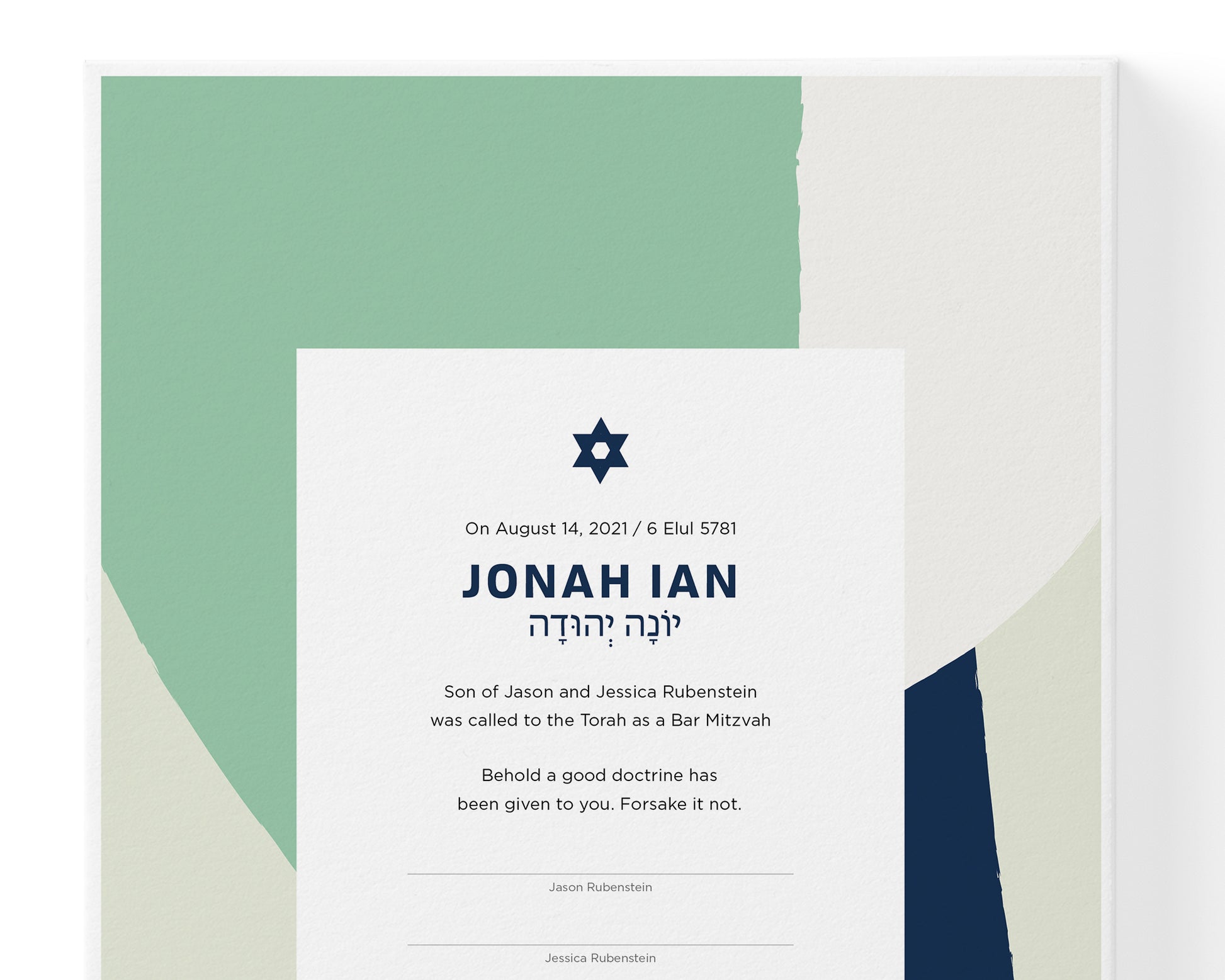 Celebrate a Bar or Bat Mitzvah with a customized certificate. Personalize names, dates, colors, quotes or anything else you’d like to change. We can usually accommodate.