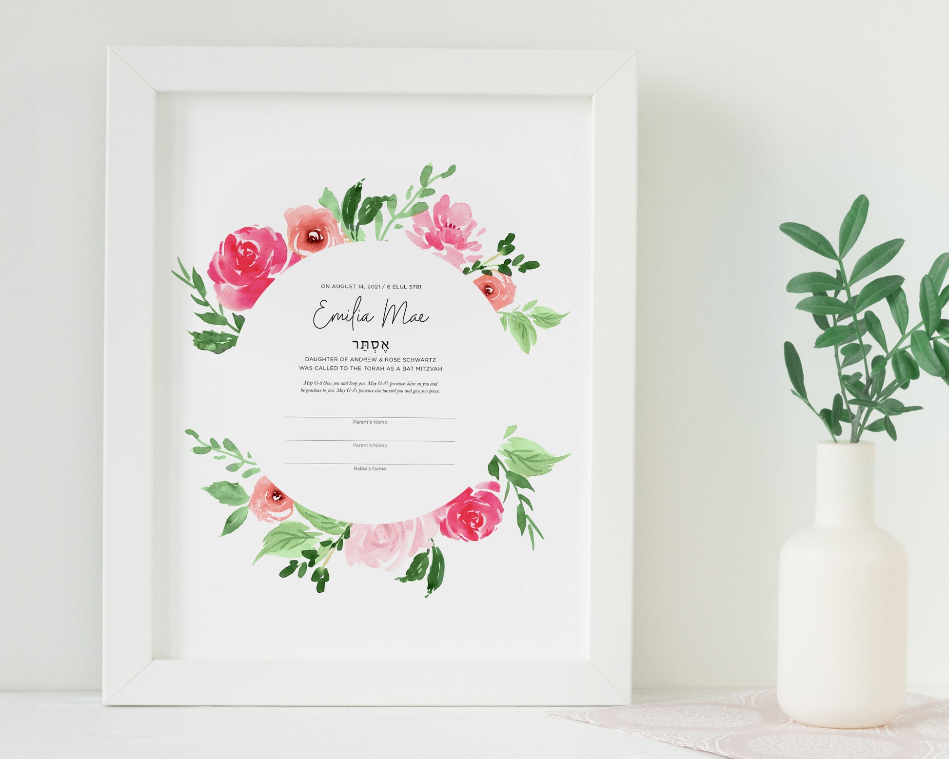 Celebrate a Bar or Bat Mitzvah with a customized certificate. Personalize names, dates, colors, quotes or anything else you’d like to change. We can usually accommodate.