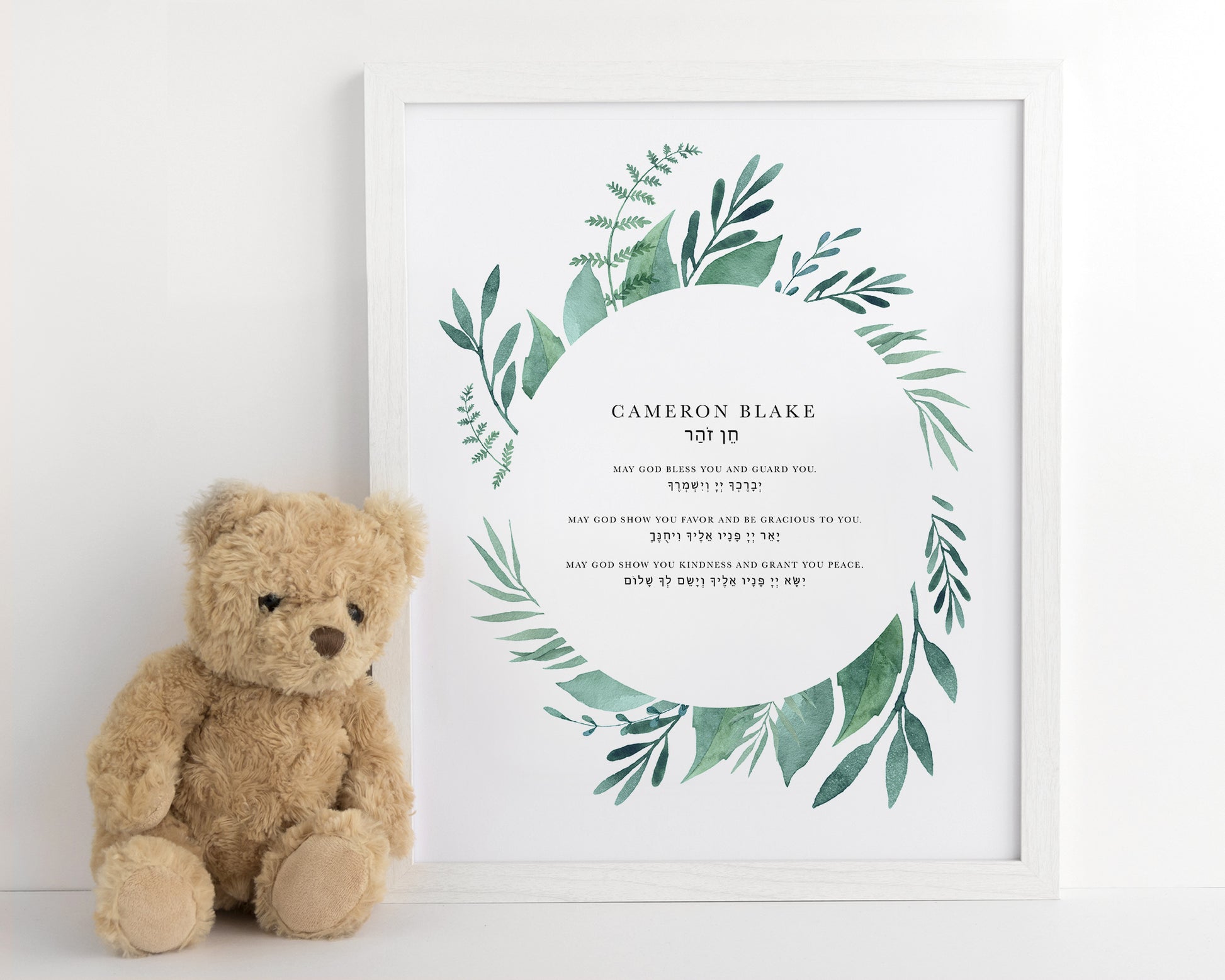 The Priestly Blessing for a child reads: "May God bless you and guard you. May God show you favor and be gracious to you. May God show you kindness and grant you peace."