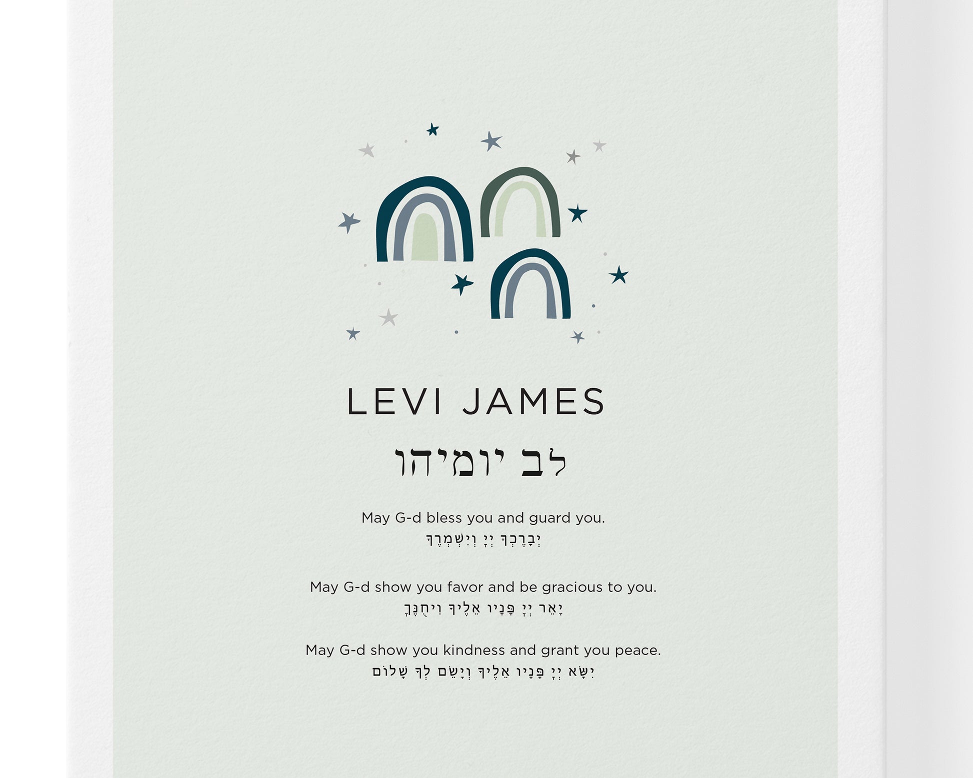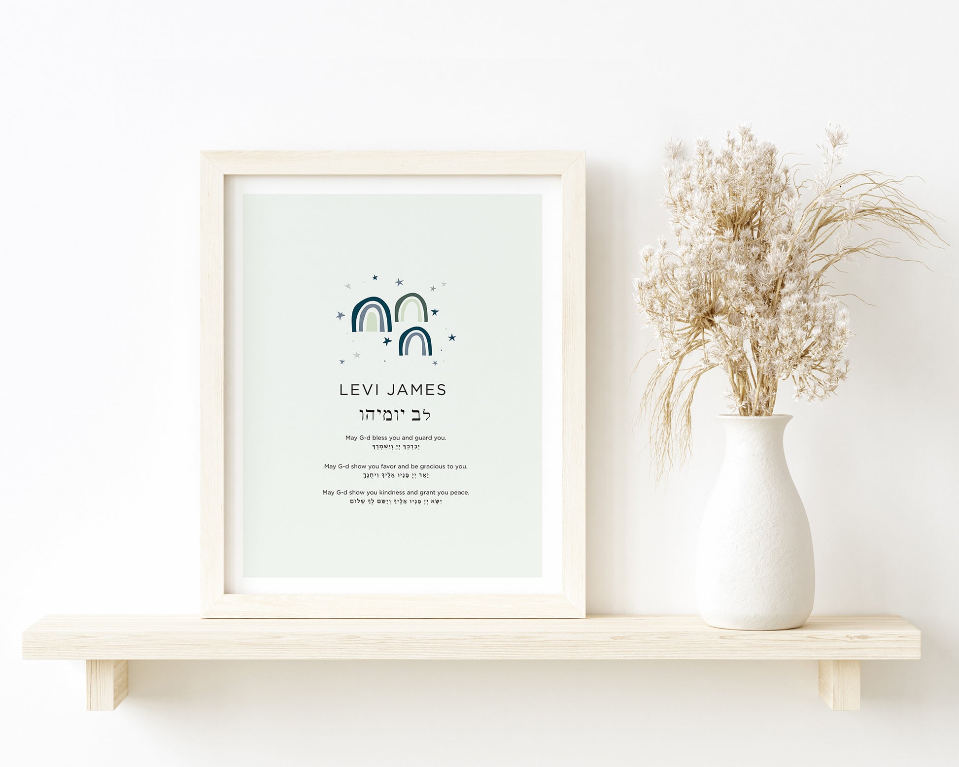 Customize this blessing for a new baby or young child with a child's name and Hebrew name. It's the perfect addition to any nursery or young child's room, and is a thoughtful and meaningful gift for new parents.
