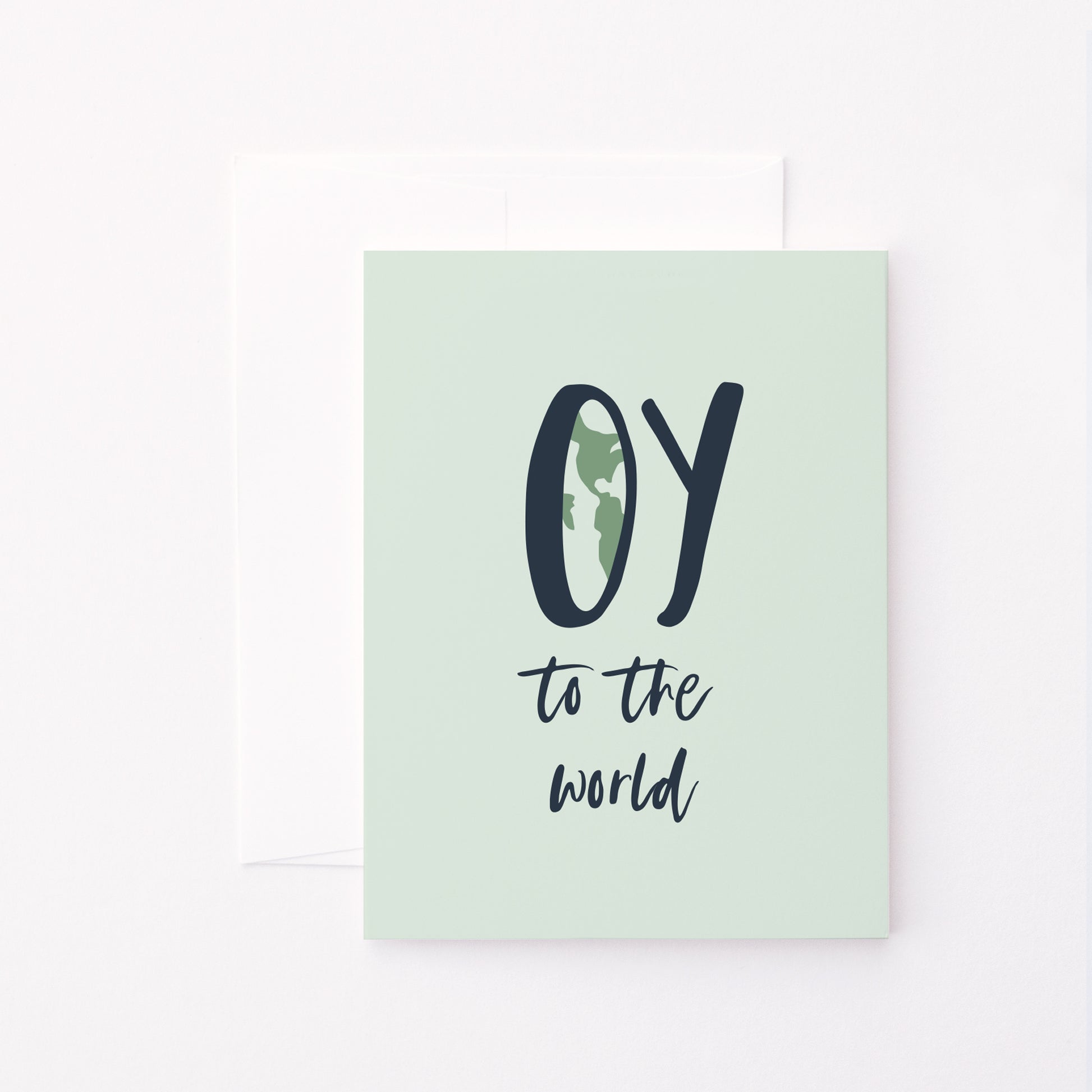 Wish someone a Happy Hanukkah with this playful Oy to the World card.