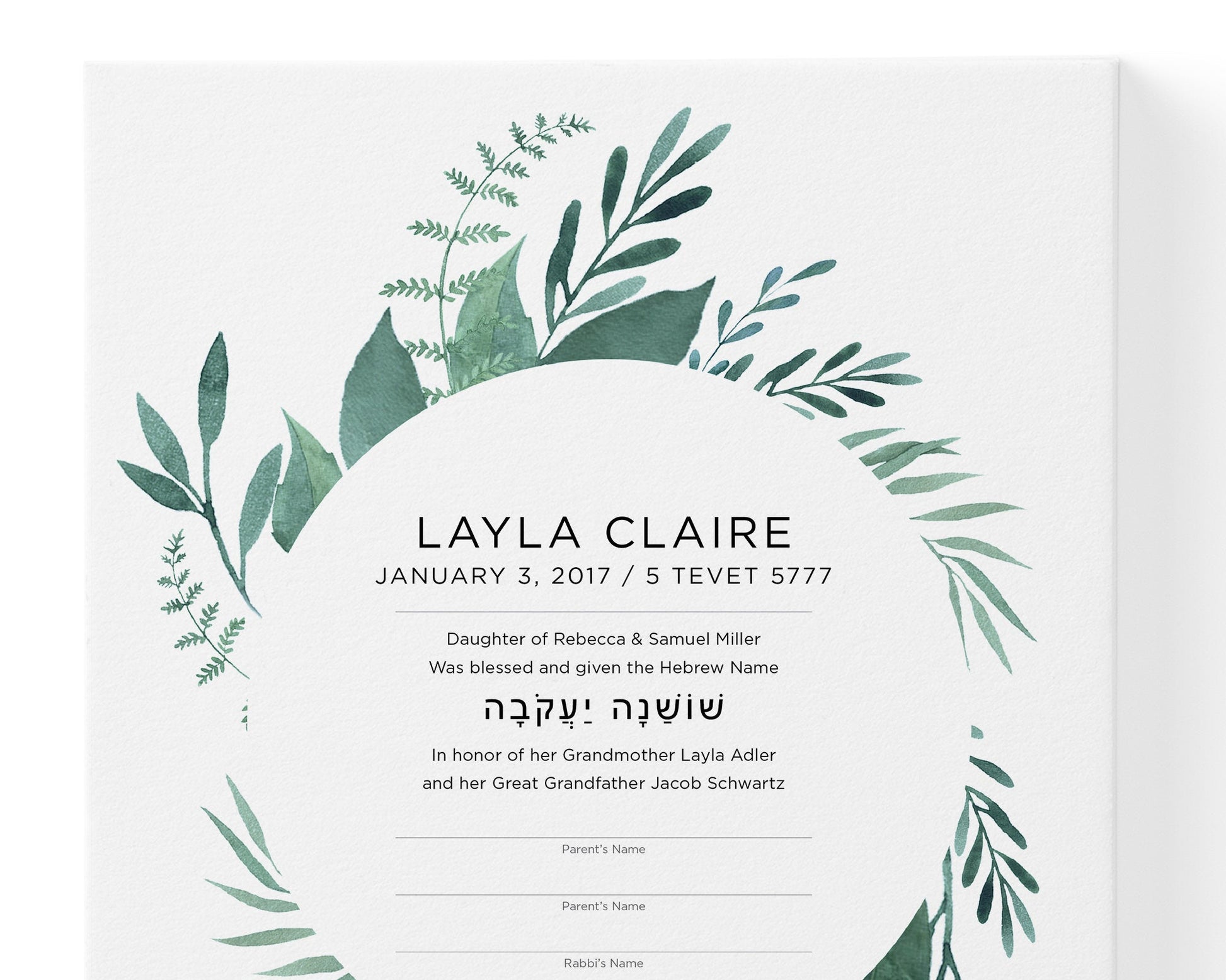 Leafy Baby Naming Certificate