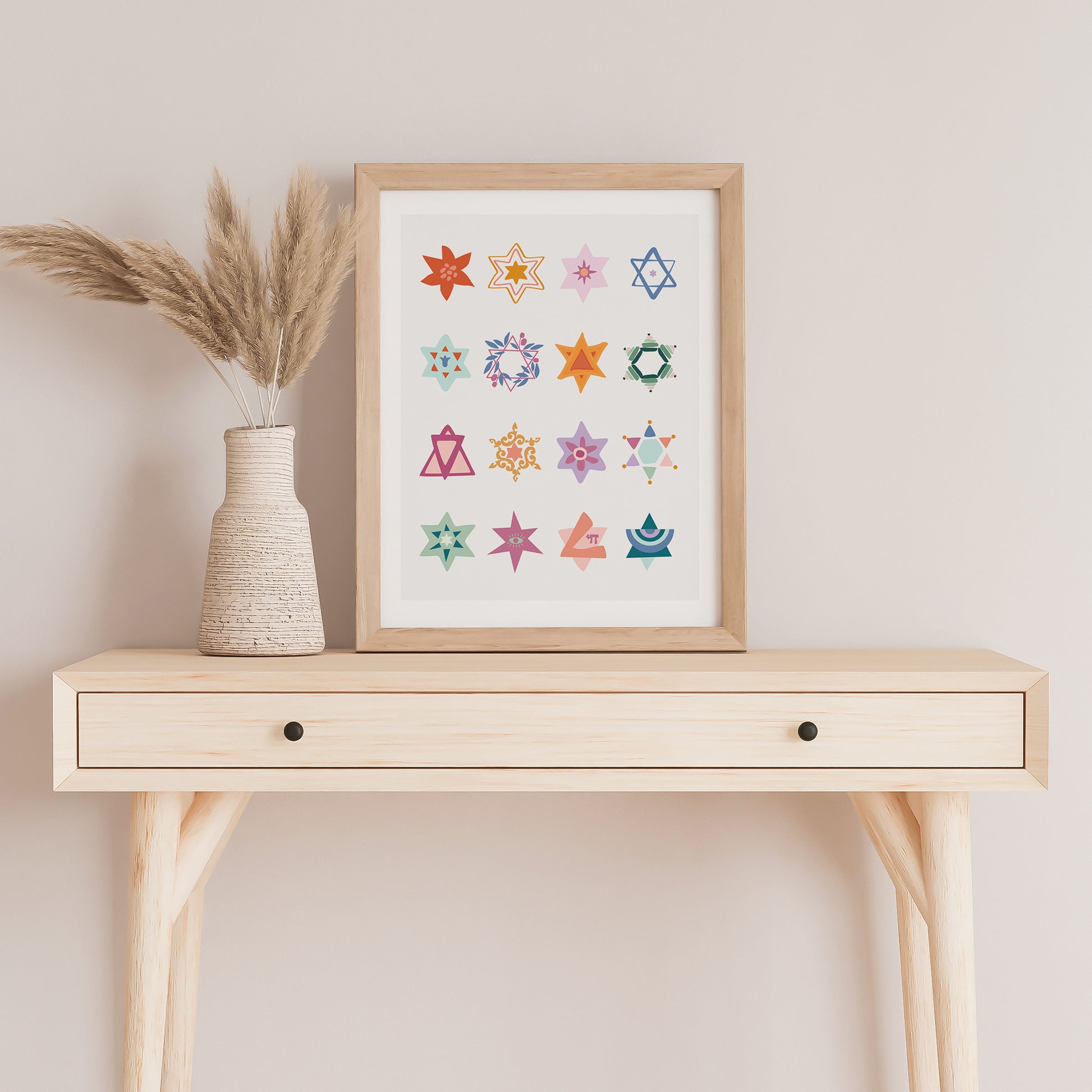 Showcase your Jewish pride with a vibrant Jewish art print boasting colorful Stars of David. Perfect for home décor or as a meaningful gift, this artwork blends tradition with modern design. The Shield of David symbolizes unity and faith within the Jewish community. Elevate your space with this unique piece that celebrates heritage and spirituality.