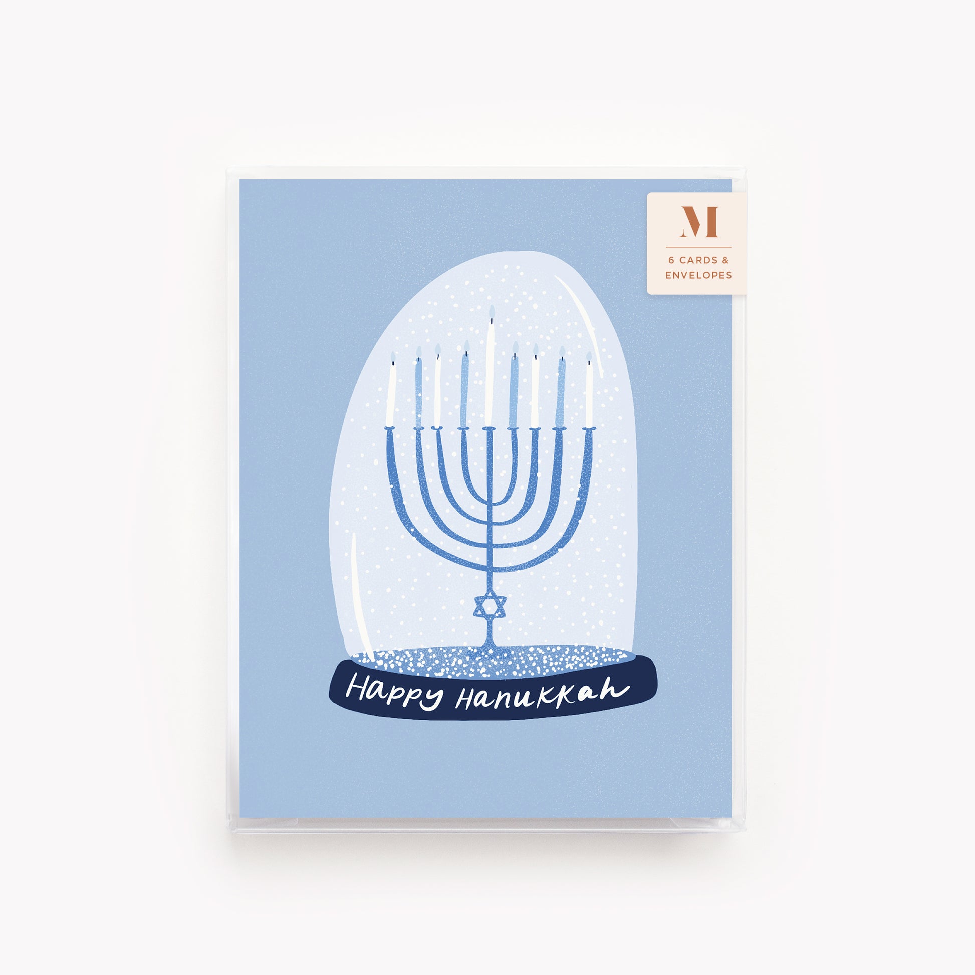 Sending Hanukkah greetings with this hand illustrated menorah snow globe.