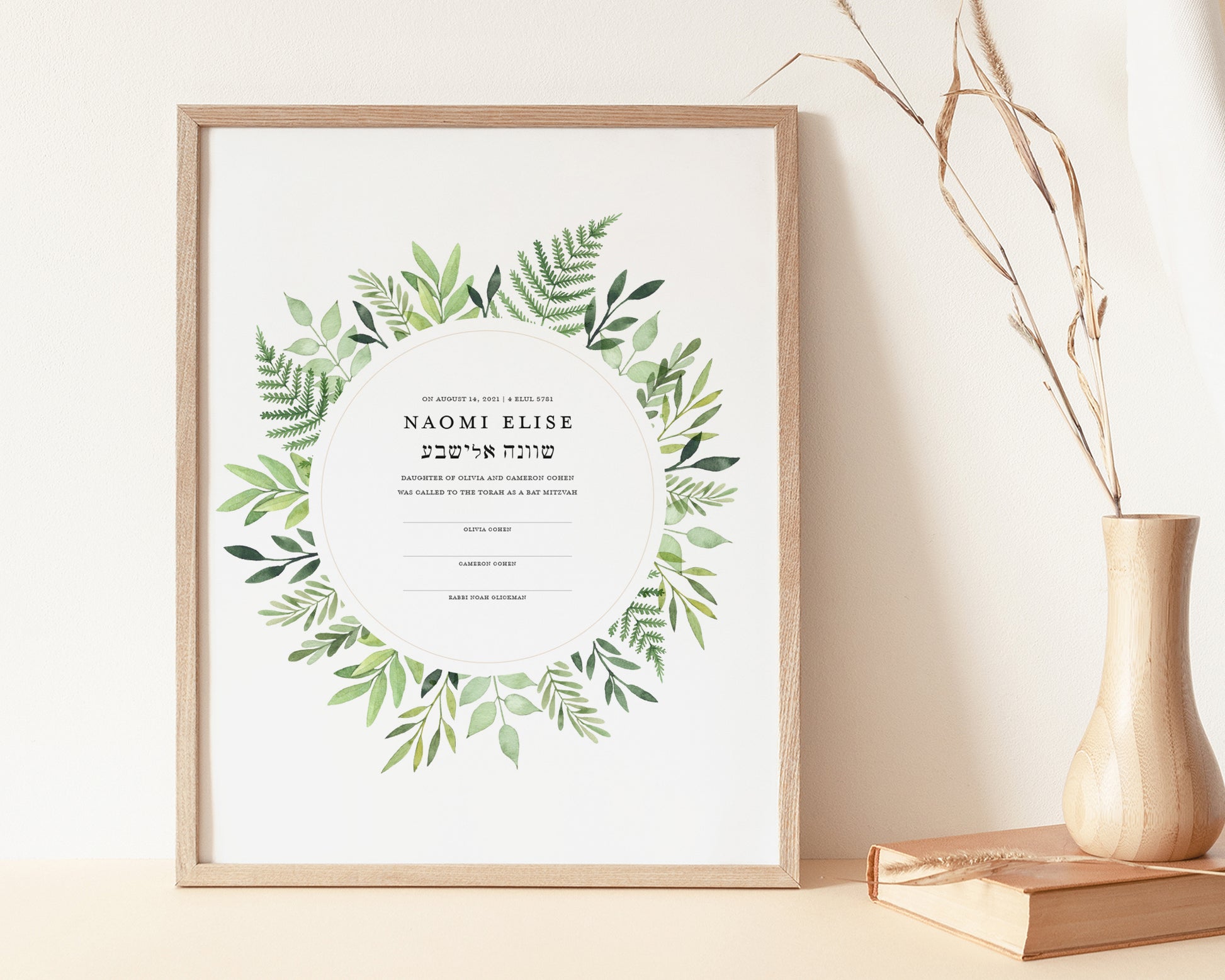Celebrate a Bar or Bat Mitzvah with a customized certificate. Personalize names, dates, colors, quotes or anything else you’d like to change. We can usually accommodate.